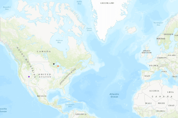 Map styled to where hoary bats were detected in 2020 and, when data were provided, number of recordings per night